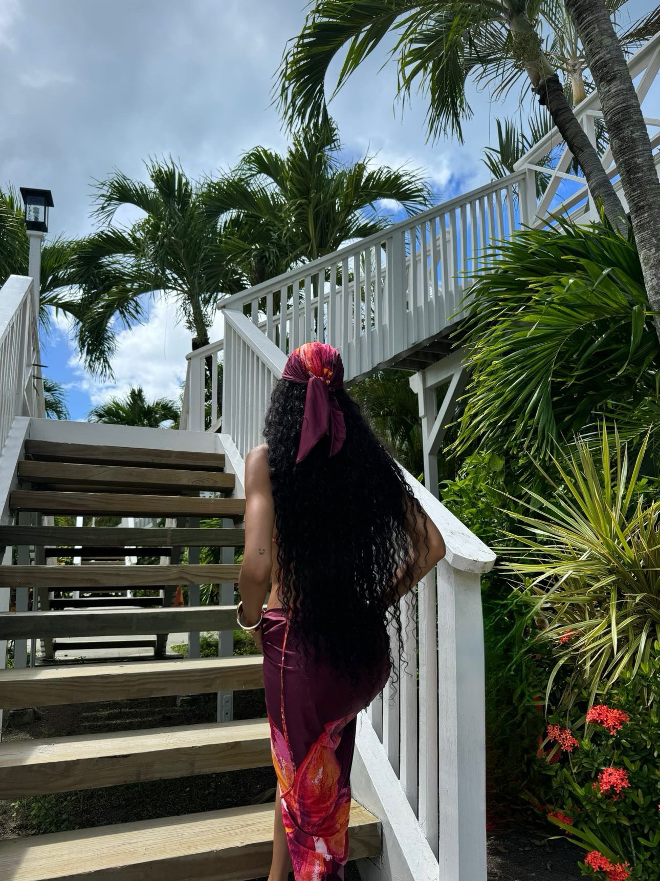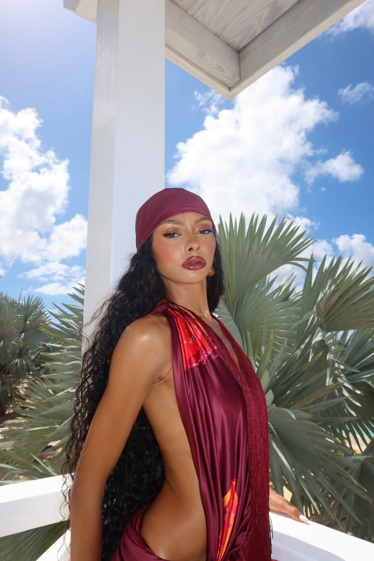 Bold, sultry, and effortlessly versatile - meet Hibiscus, the deeper side of resort glamour. This reversible headscarf blooms in rich shades of wine, magenta, and sunlit coral - a nod to tropical nights and slow heat.