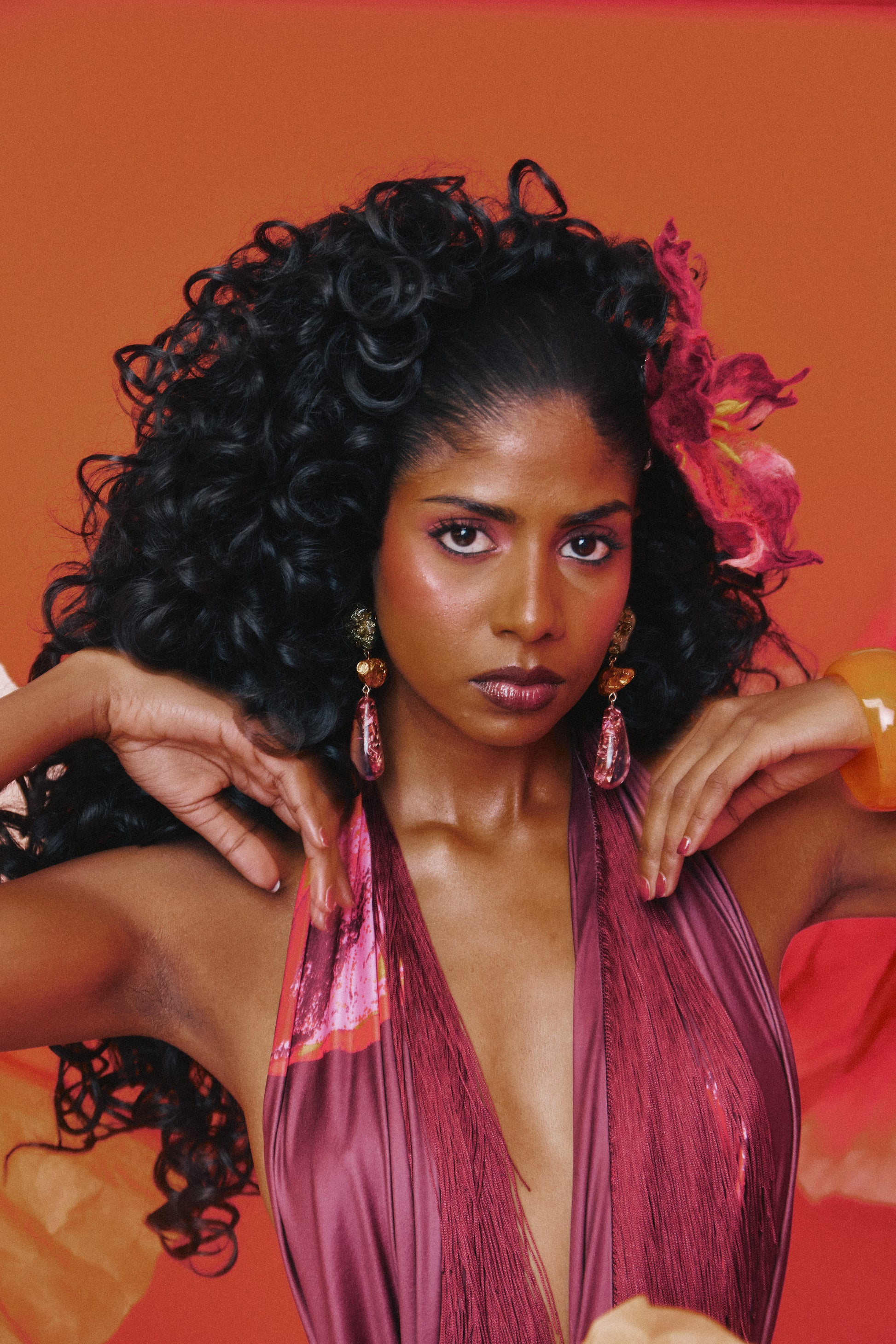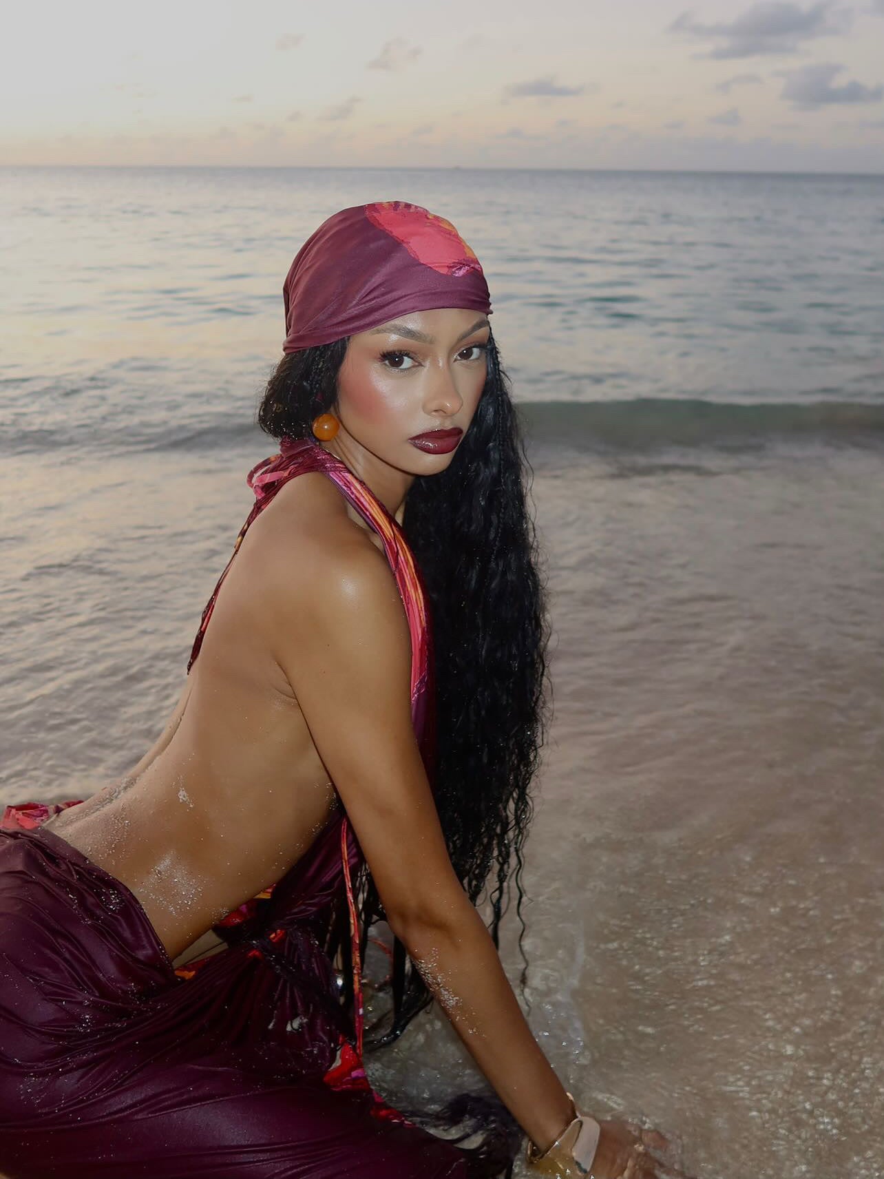 HIBISCUS is Magnolias twin sister. This statement sarong blooms with bold femininity. Drenched in rich magenta tones with hand-painted floral accents, this piece channels tropical romance and island opulence. Designed to be worn multiple ways - its flowing fringe and fluid drape move with every step, creating a soft yet powerful silhouette.